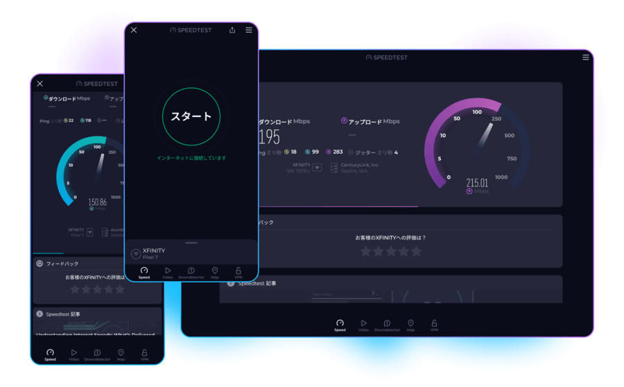 いつでもお好きなデバイスで、インターネット速度をテスト